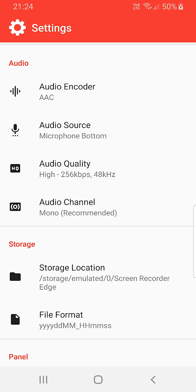 This is a simple application that records your phone's screen and microphone audio. Its difference is that it is used by the edge panel. You can start and stop recording by setting a recording and viewing the videos saved by the edge panel.