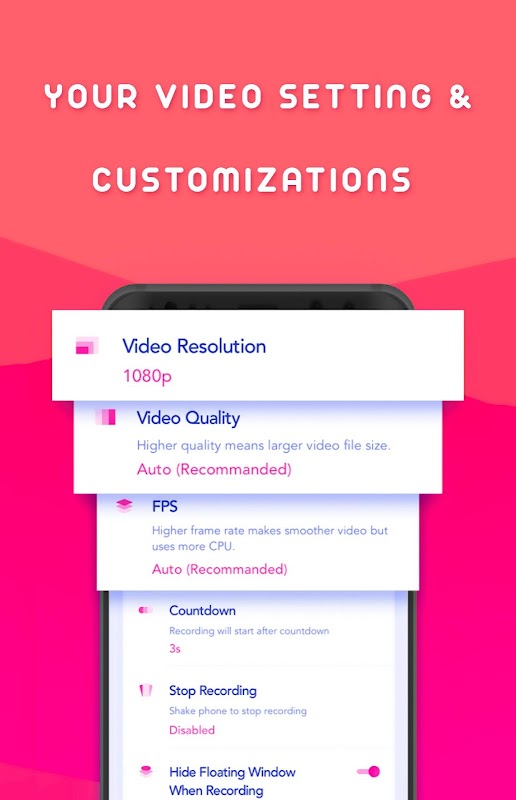 This App is high quality screen recorder for record smooth & clear screen videos.