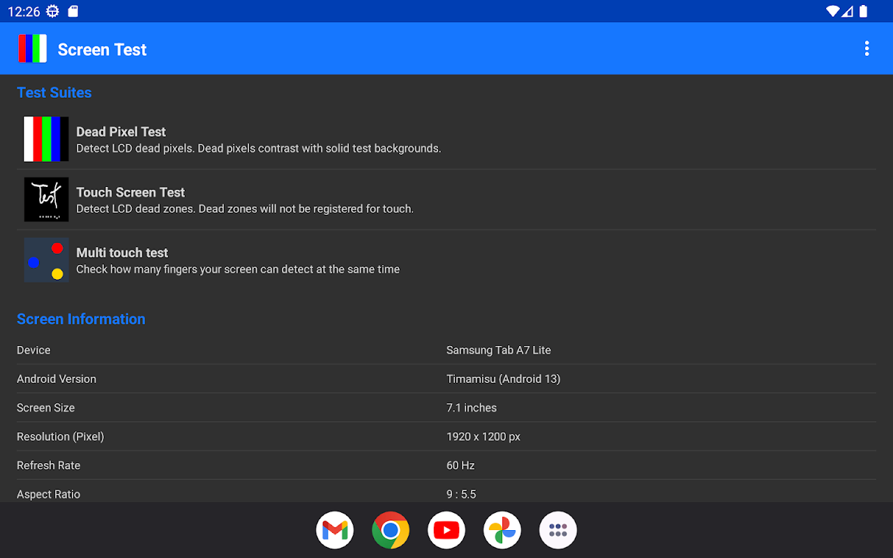 此 Android 應用程序提供了一套顯示和触摸屏診斷測試,可幫助識別設備屏幕的問題。