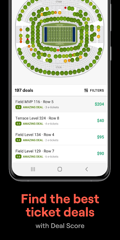 不必擔心再次被剝奪,SeatGeek上的每筆交易都會根據價值從最佳到最差進行顏色編碼。