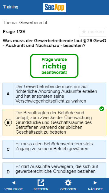 此應用程序用於根據《工業法規》第34a條,為安全行業的專家考試的筆試做準備。它包含工商會(IHK)在考試期間詢問的所有主題領域的綜合問題清單。