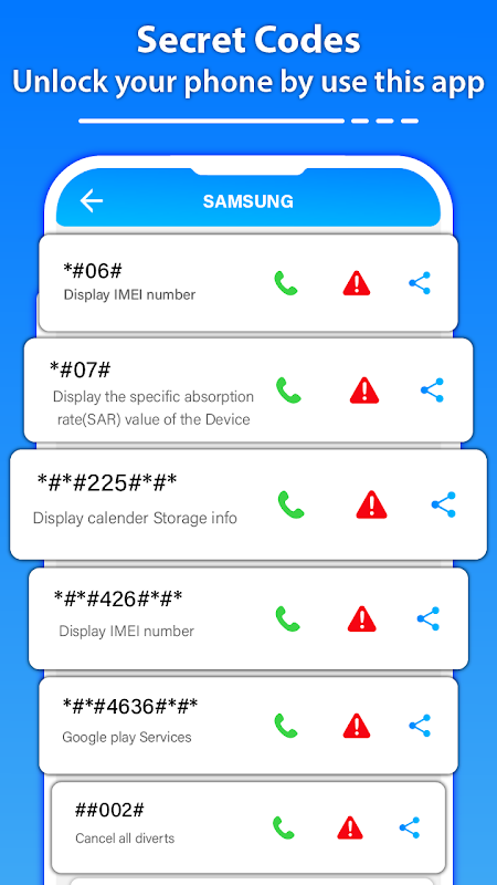 現在不需要記住所有這些符號。使用移動密碼,您可以一鍵直接操作。您的手機上有許多隱藏的設置和信息,只有通過撥打密碼才能訪問。