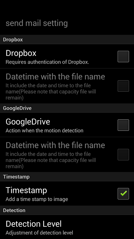 移動動作時拍照,語音留言,電子郵件,保管箱上傳,GoogleDrive上傳。