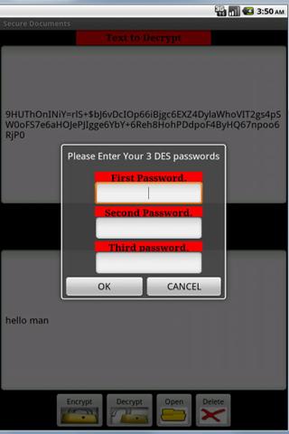 You have to juggle a lot of sensitive information: log-in IDs and passwords, credit cards and bank account numbers, family Social Security numbers, sensitive e-mails and texts, etc. Sometimes it seems like it's getting to be too much to handle. Secure Documents offers a way of ensuring that all of these documents and numbers are both readily accessible to you and emphatically private. Using Triple DES or Single DES Encryption, the app saves your information to a protected database inside your Android device. Secure Documents encrypts and stores virtually anything: sensitive emails, passwords, account numbers, etc. Your data remains readily available for you to decrypt and reference, but safe from prying eyes in the event that your phone is lost, stolen, or snooped through. This Lite Version will allow two files only to be saved. Please buy the Full Version for Full Access. Thank you