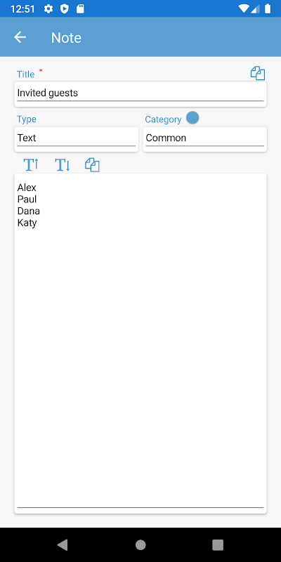 Notepad with notes, checklist, pictures, voice records, birthdays and passwords