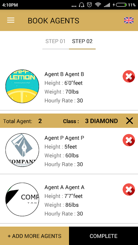 - Step 2: Select how many agents and the agent class (Standard is 1 diamond)
