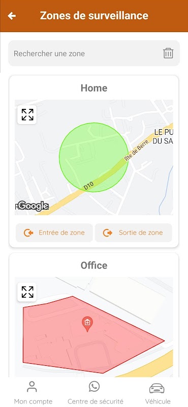 - 設定2個監控區域,車輛進入或離開這些區域時收到警報