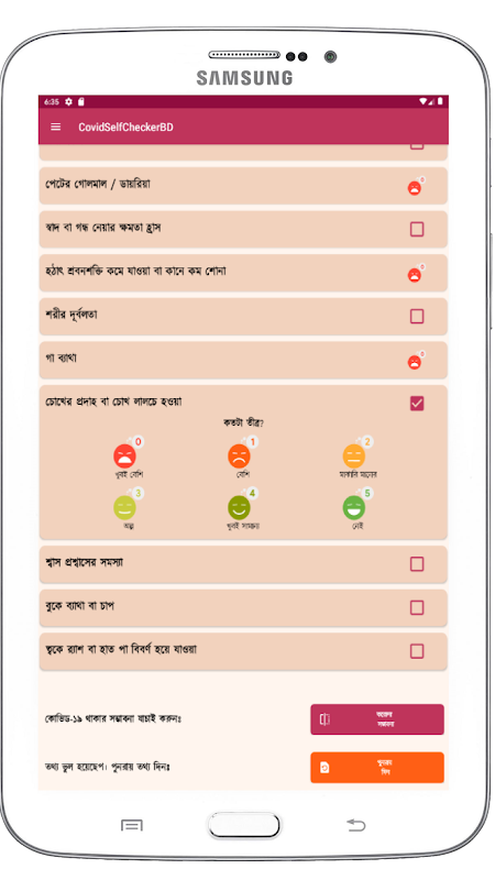 এই অ্যাপটি আপনার প্রদত্ত তথ্যসমূহ থেকে কেবলমাত্র এটা যাচাই করে যে আপনার শরীরে প্রাপ্ত লক্ষণসমূহ ভাইরাসের ললহ্মণসমূহের সাথে কতটা মিলে। যদি বেশি মিলে যায় তাহলে অবশ্যই শরীরে ভাইরাস থাকার সম্ভবনা বেশি। আপনার শরীরে করোনা ভাইরাস আছে কি না তা আপনি এই অ্যাপ থেকে নির্নয় করতে পারবেন না তবে এটা জানতে পারবেন যে আপনি করোনা ভাইরাস আক্রান্ত হবার কতটা ঝুঁকিতে আছেন।
