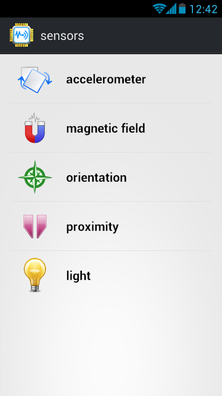 在列表中,你會看到有多少傳感器您的手機或平板電腦組成。包括加速度計,磁傳感器,方位,陀螺儀,溫度,光,壓力,接近,重力...