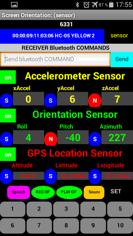 參數“TimerInterval”(在左上角),設置發送/接收藍牙數據,以毫秒為單位的速度。