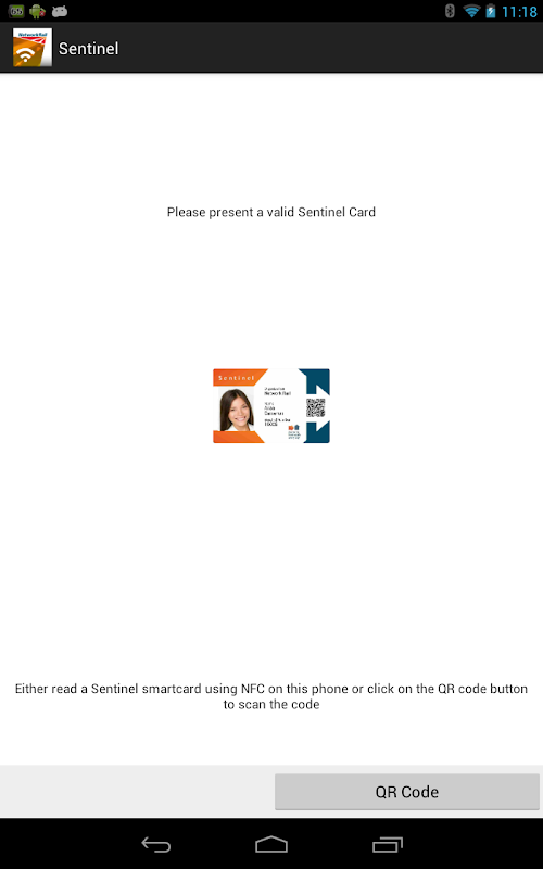 2.如果使用NFC,持有新哨兵智能卡到設備的背部或單擊QR碼按鈕,並集中在相機上網卡的QR碼。