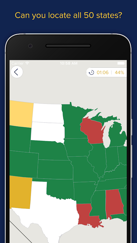 那些對美國各州首府不太熟悉或對那些討厭的“istans”的當前狀態和存在含糊不清的人可以使用學習模式瀏覽類別並鞏固他們的知識庫。當準備好測試他們的記憶力時,只需點擊一下即可完成交互式地圖識別任務。