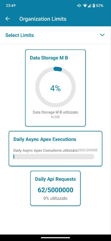 限制監控:即時顯示組織限制。提供不同的視覺化效果(圓形、水平、文字)。允許配置關鍵限制的警報。可自訂的儀表板,具有最重要的限制。