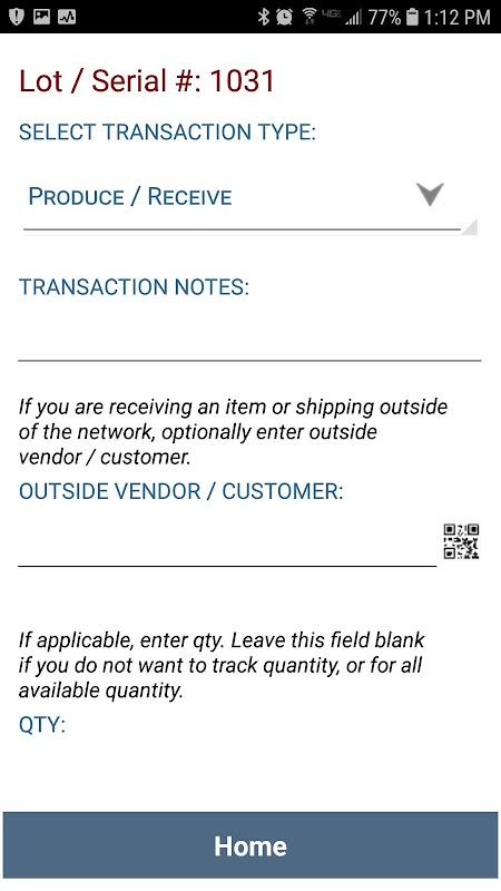 Use a smartphone to scan QR code on the lot, batch or serialized inventory item to record item movement through the process, and record additional observations / data as needed. Shared Traceability allows you to collect any data on the process without defining what do you need to collect upfront.