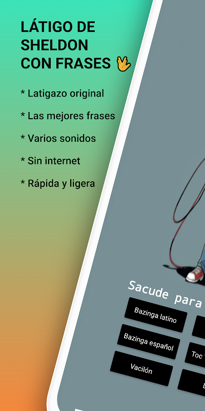 只需打開應用程序,搖動您的智慧型手機即可享受聲音,同時模仿謝爾頓的典型手勢。非常適合惡作劇、與朋友聚會或只是玩樂。巴辛加!