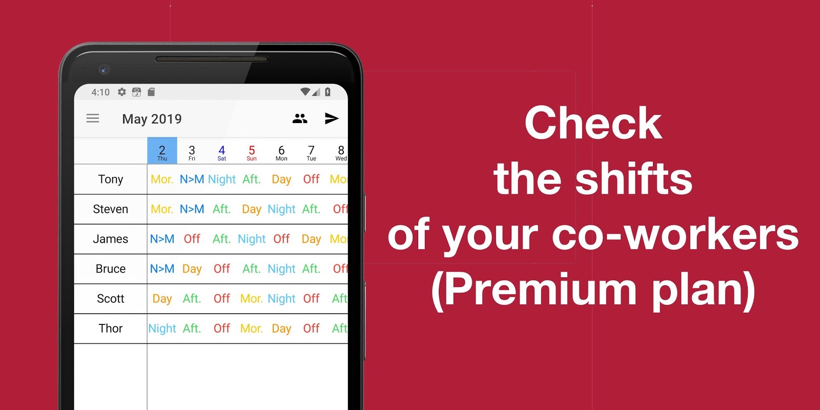 ・查看並分享同事的班表。