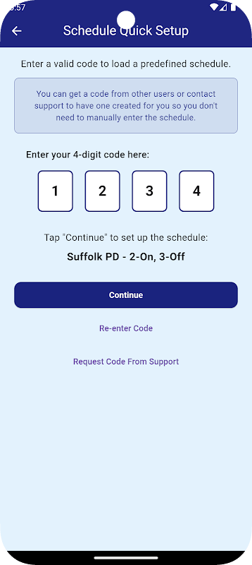 加載快速設定代碼以下載預先定義的時間表,這樣您無需手動輸入。您可以輸入 4 位數代碼即可立即設定您的時間表。