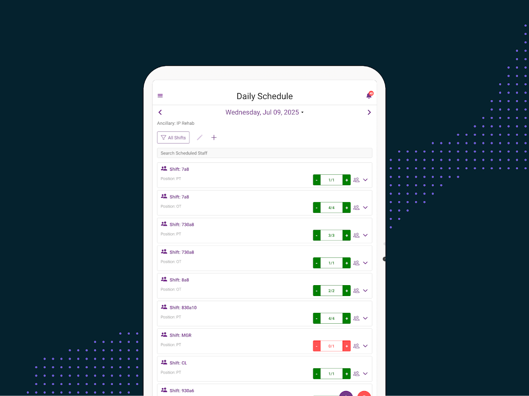 ShiftWizard 旨在滿足醫療保健產業的複雜需求,是您提高效率、提升可見度和增強溝通的關鍵。這款用戶友好的應用程式使醫療保健專業人員能夠: