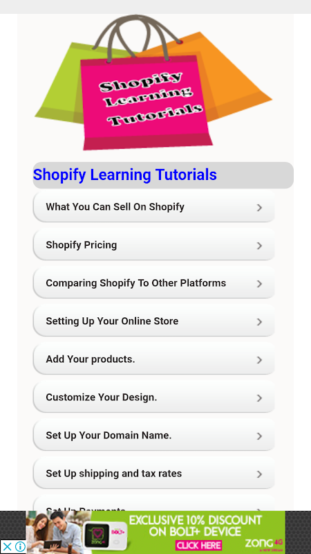 -> Shopify Learning Tutorials Offline App is completely offline so just download and enjoy.