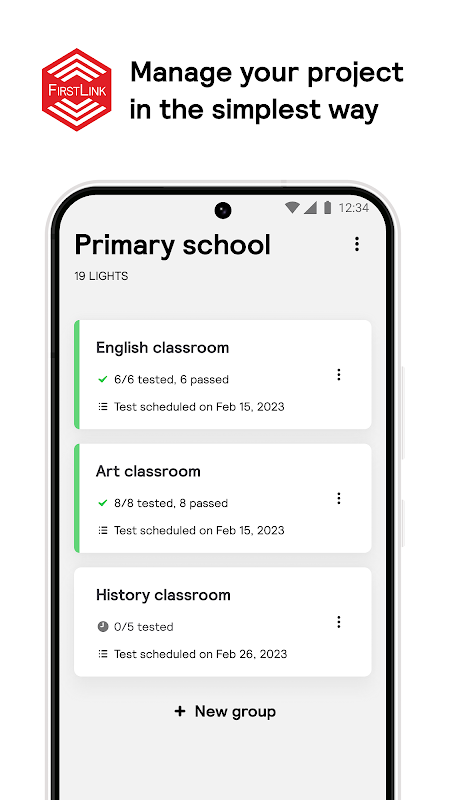 Signify FirstLink 應用程式是您連接 FirstLink 緊急出口照明系統的入口網站。這款操作簡單的智慧型手機應用程式可讓您配置緊急照明設備、查看和匯出測試結果、制定測試計劃等。