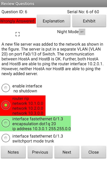 學習模式下每道題都有完整的解釋,考試模式下模擬實際考試環境。提供了保存結果和查看問題的選項。