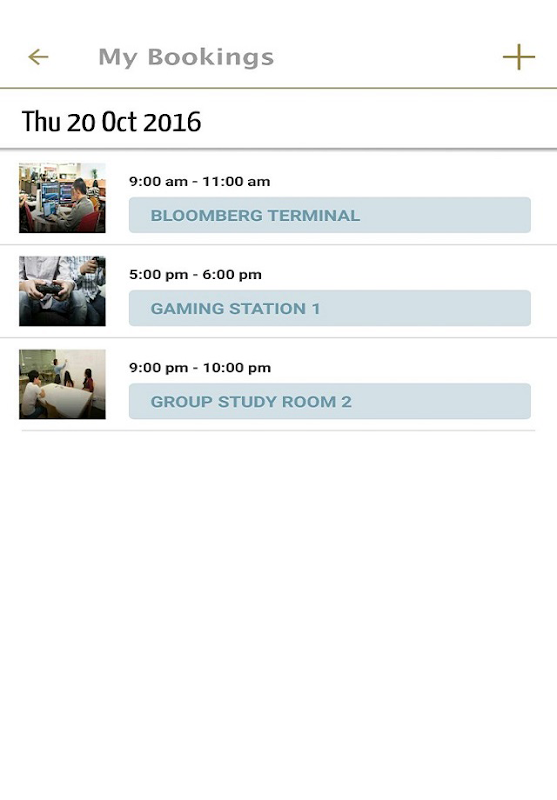 • Book or cancel Group Study Room, Gaming Room, Notebook or the Bloomberg Terminal