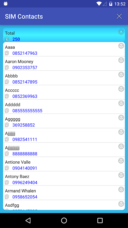 * Copy all contacts from sim card to phone device.