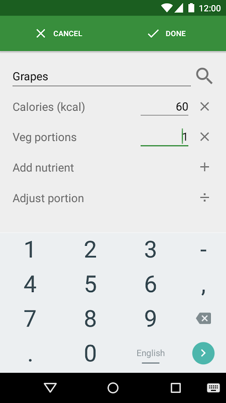•查找營養價值在選購離線數據庫,或手動輸入。