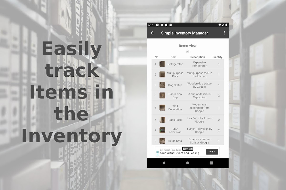 滿足您庫存需求的唯一應用程序。它適用於小型企業和家庭,用於管理商店或倉庫中的物品或對CD和書籍等個人物品的收藏進行分類。