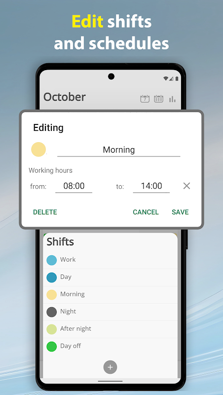 工作輪班時間表日曆。計算工作時間和收入。警報