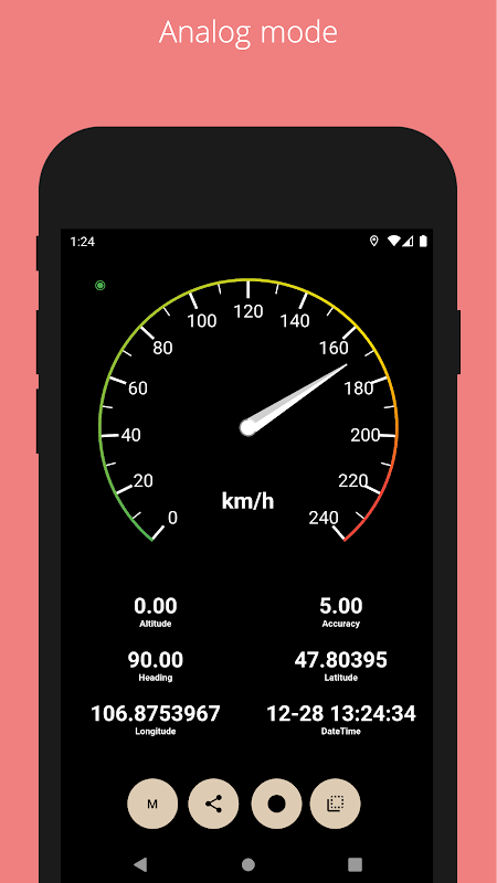 此應用程序是基於GPS的速度計,顯示了其安裝設備的速度。速度既可以通過模擬儀表顯示,也可以顯示為數字值。