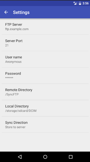 This is a file synchronization tool using the FTP protocol for uploading and downloading files from a FTP server. It is useful for the automated uploading of camera photos, music, or any other files from your device to a FTP server and vice-versa.
