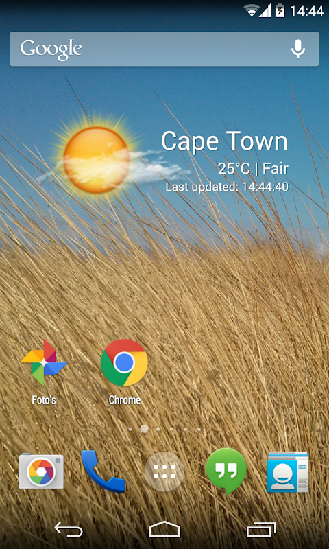 A simple but beautiful widget that shows the weather at your current location or a location set by you. The widget contains over 40 different icons, one for every weather type. Also, the background will change according to the current weather and time of day.