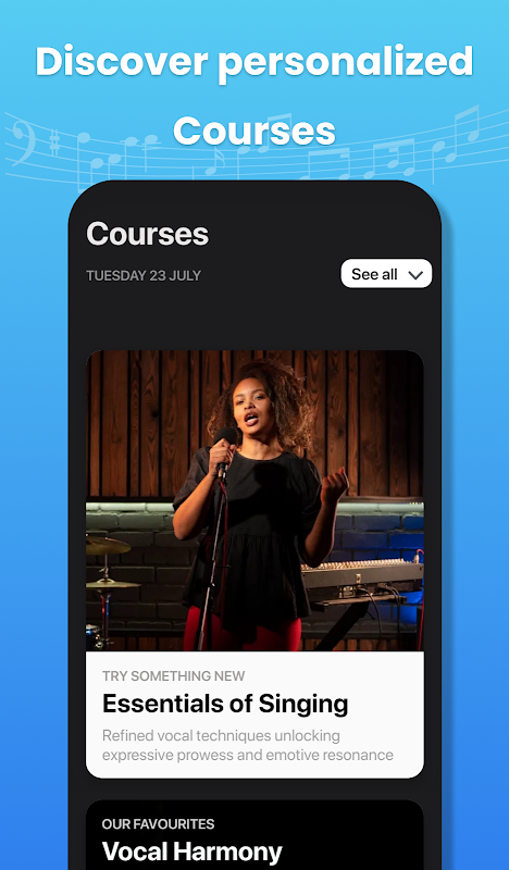 堅持練習我們旨在幫助您每天唱得更好的指導性練習。立即使用我們簡單易懂的聲樂訓練計劃,開啟您的歌唱之旅!