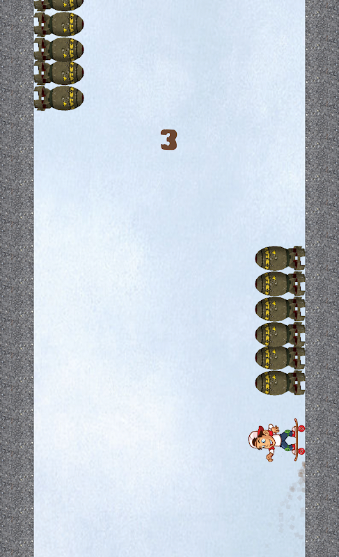 An old cache of World War II bombs was discovered by construction workers in your home town. The Army immediately seized the area and declared it unsafe for public. You however are a famous skateboard kid and have no intention to comply with the rules. You take your skateboard, cross the do-not-cross line and decide to challenge your abilities to skate and jump!