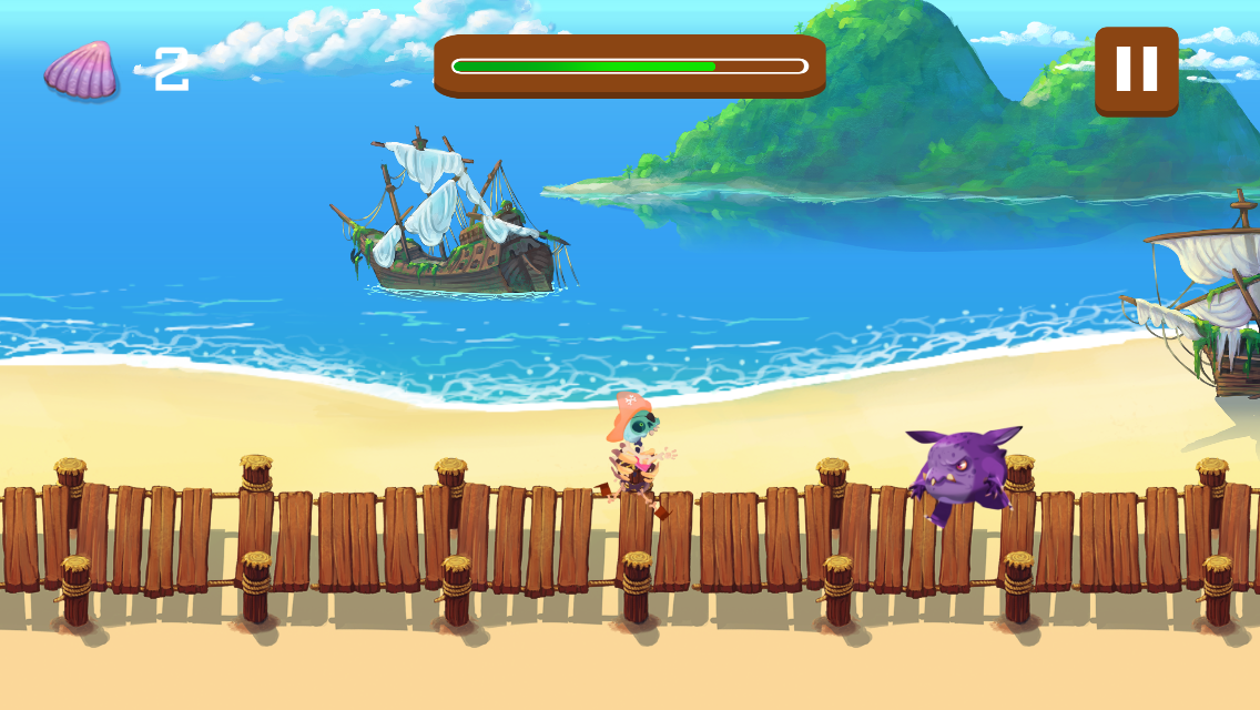 屏幕頂部顯示一個生命條,向您顯示海盜骨骼的健康狀況,該生命線具有三個生命點,在與敵人碰撞時會造成一點傷害,在與地雷碰撞時會造成傷害。三點傷害,導致遊戲結束。