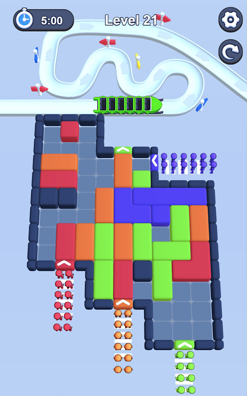 重新引導街區和公車,清理停車網格,並躲避各種顏色的街區和障礙物。