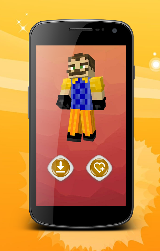 Skins Hello Neighbor for Minecraft has a catalogue of skins for you to choose from: angel skins, anime skins, swords mod, teen skins, superhero skins, monster skins, military skins, noob skins, furniture for minecraft, golems mod, house ideas, robot ideas, skin editor, lucky block, airplane ideas, cape editor, hello neighbor for mcpe, free craft, shaders, pvp skins, girl skins, baby skins, princess skins, boys skins, mob skins, enderman skins, youtubers skins, multiplayer for minecraft, herobrine skins and many others. You can apply any skin to either the Pocket Edition of Minecraft or the PC.