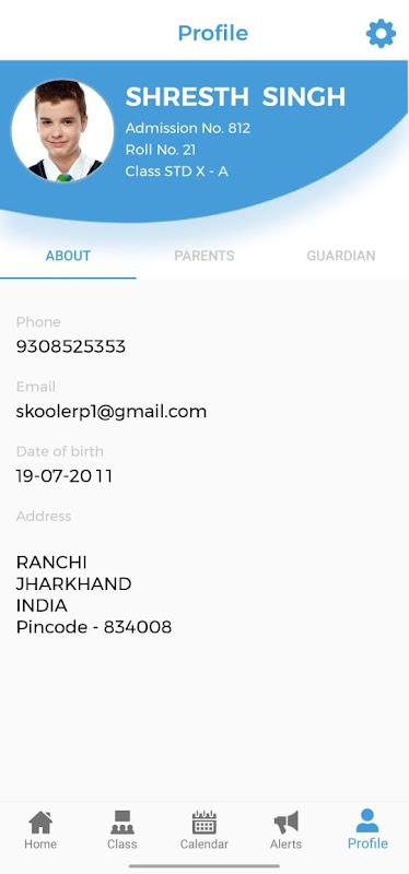學校代碼,用戶名和密碼應該是您通過SMS收到的代碼,並且父門戶網站(例如:schoolname.skoolerp.in)的登錄憑據也相同。