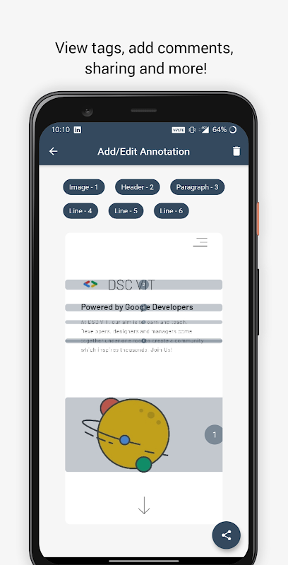 Screenshot Manager uses image processing to identify HTML tags on the uploaded image and returns the location of the tag, which shows as an overlay on the app. The user can add/edit comments on the tags conveying whatever needs to be changed, like “decrease font size”. He can also create and delete projects. To make managing screenshots easier, the app also deletes all the screenshots inside the project.