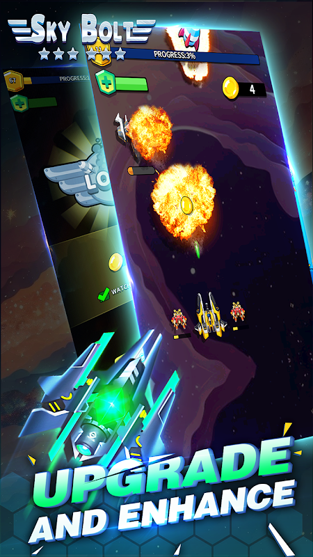 歡迎來到《Sky Bolt》,這是一款令人興奮的空戰遊戲。玩家控制戰鬥機突破一波又一波的敵機並擊敗強大的頭目。透過消滅敵人來賺取資金來升級你的戰鬥機。遊戲提供各種類型的飛機,每種飛機都有獨特的性能和技能。玩家需要根據自己的戰鬥風格選擇合適的飛機,並使用不同的技能和裝備進行升級。 Sky Bolt 很容易學習,但隨著關卡的進步,挑戰性會越來越大,帶來無盡的樂趣和成就感。