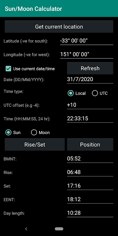 隨時隨地計算太陽和月亮的位置。