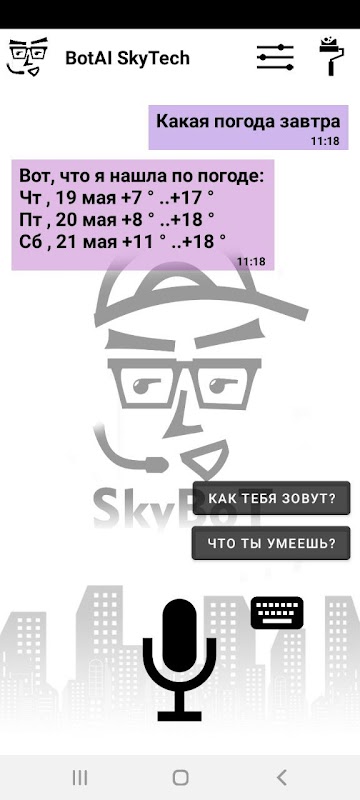 用兩個詞設置警報,只需說出一個短語即可翻譯一個短語,或者,例如,無需手指即可立即找出所有新聞 - 所有這些都可以通過 SkyBot 語音助手完成。精密的人工智能不會讓你感到無聊,豐富的功能會讓你放棄長時間尋找自己需要的東西。