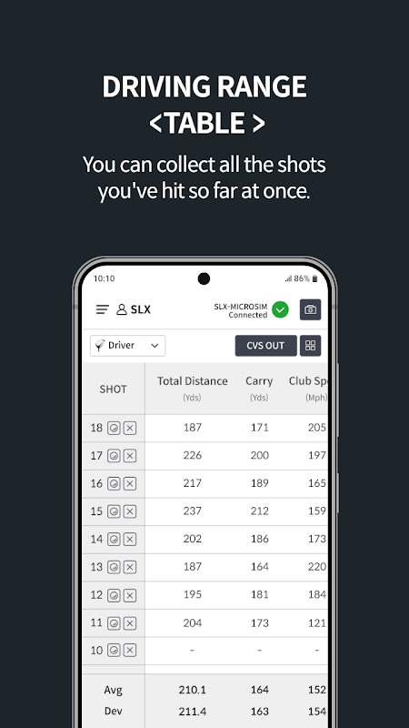 GPS 驅動的距離測量。 SLX Connect 將包括高爾夫模擬器功能,可與所有 Swing Logic 高爾夫模擬器硬體一起使用。 它提供了揮桿指標、距離、桿頭速度、球速、發射方向(使用 SLX NanoSensor 時)以及練習期間擊球的 3D 視圖的詳細統計數據。