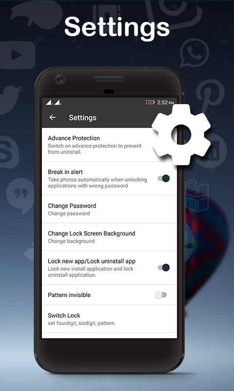 AppLock has invisible pattern lock. No more worry people may peep the pin password or pattern. More safe!