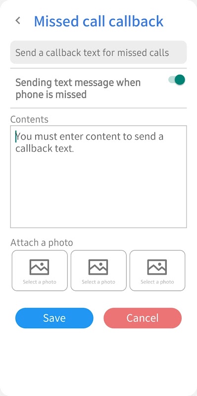 該應用程式會在通話後自動發送預先輸入的簡訊。