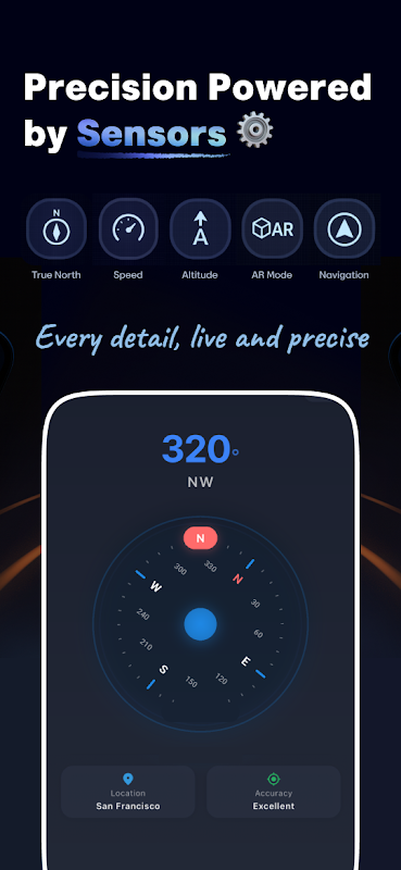 與基礎指南針應用不同,Smart Compass 360 採用先進的演算法,結合磁性感測器和 GPS 數據,實現最高精度。是專業人士和戶外愛好者的理想之選。