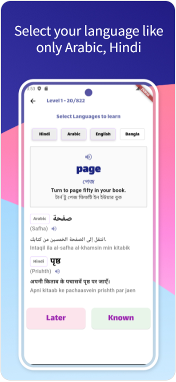 ✅ 一起學習 4 種語言您可以學習英語:🌐 孟加拉語、印地語、阿拉伯語和英語本身!