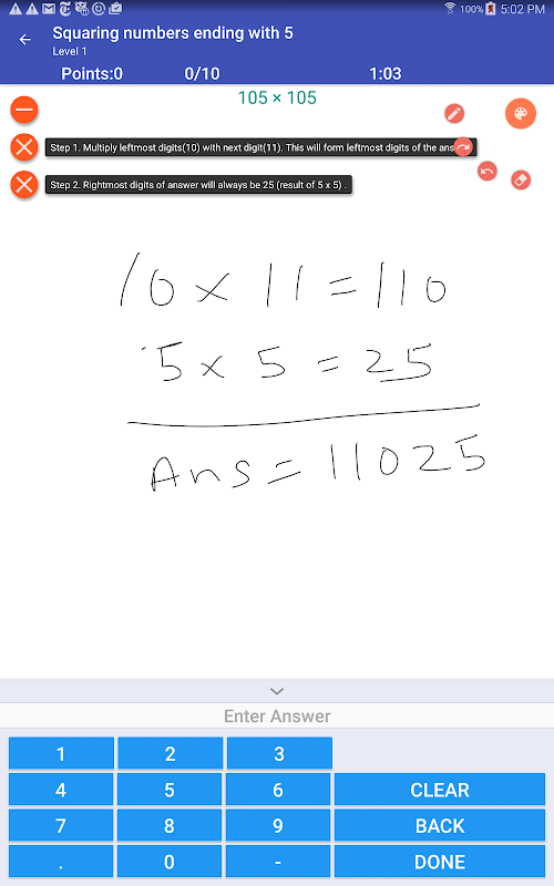This app will teach you math tricks that you can apply anywhere. This app also includes lots of practice sheets with varying level of difficulty to help you practice and track you progress on each trick.