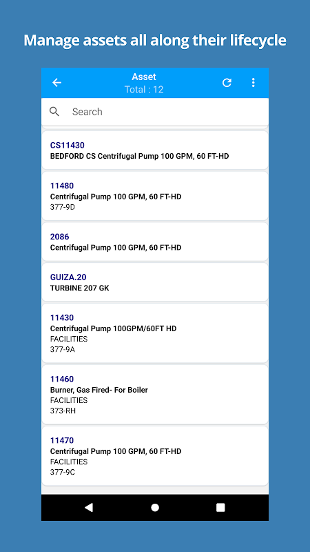 − Manage assets all along their lifecycle, and specify their information such as parent, location, vendor and status